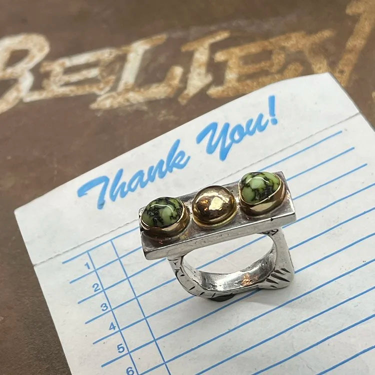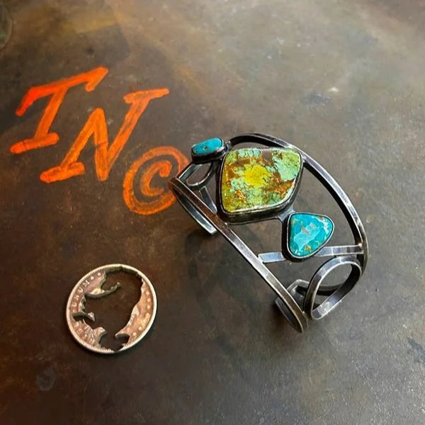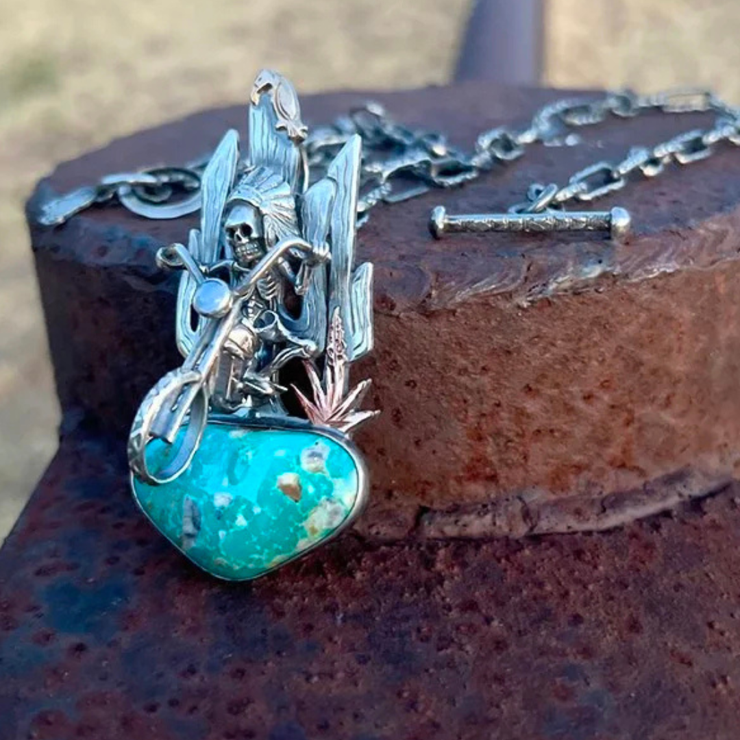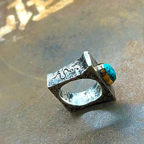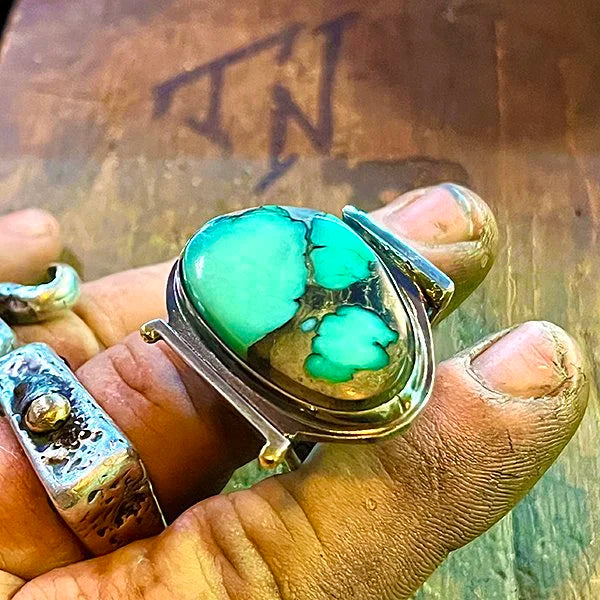 Rugged silver, Egyptian turquoise, and a push toward whateverβs next. One-of-one.