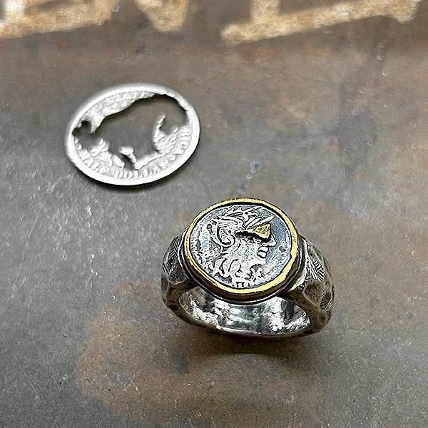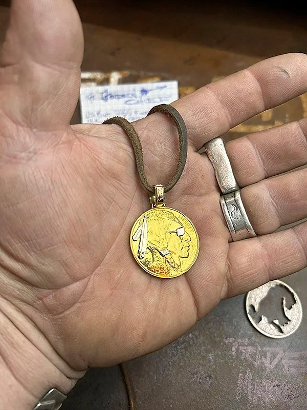 A century-old coin reborn with a bronc cutout and gold mane. One-of-one.