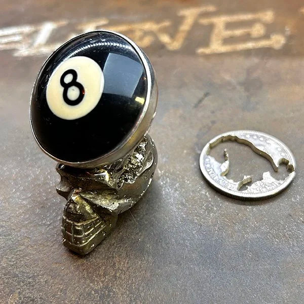 Sterling-crafted eight ball set in handwrought silver. One-of-one.