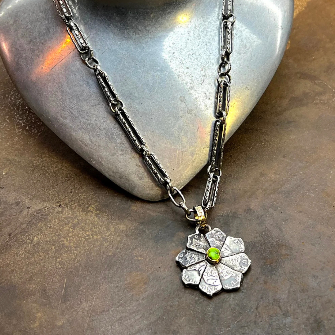 A wild bloom built from silver, gold, turquoise, and time. One-of-one.