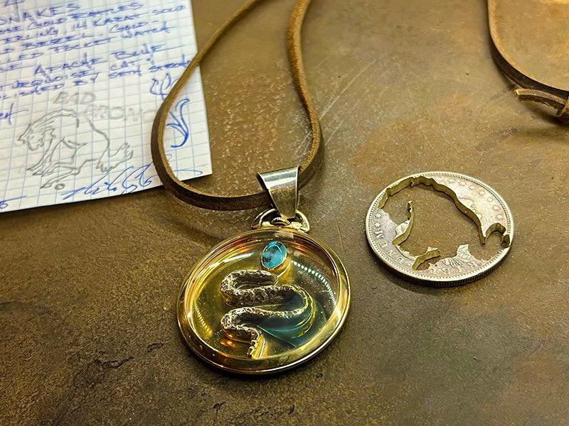 Gold, rattler form, and a Verasite stone with a past. One-of-one.